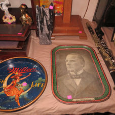 Movie posters; Miller, Coors, and other beer advertising items; Red Good & Poll Parrot Shoe Display; Coors neon sign; Drum major batons; Vintage film projectors; Playboy magazines; Toms peanut jar; Original Mayfield Parrish prints; Iron banks; Ship clocks; Lots of Native American collectibles including statues and figurines; Chalk figures; Antique tobacco and coffee cans; Antique cash register; Big Boy bank; Sinclair oil can; Slag glass lamp;